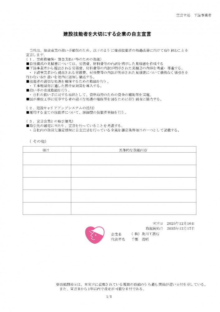 今後も株式会社及川工務店は「安全第一」を基本に、循環型社会の実現と地域社会の持続的発展に貢献してまいります。 -